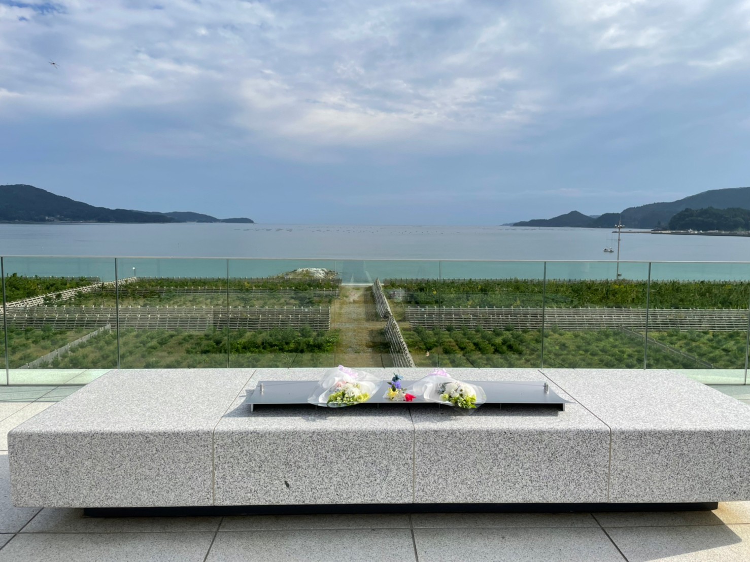 お土産にマスカットサイダーを買った仮のお土産屋さんはなくなり、代わりに立派な道の駅と記念公園となって観光客が訪れていました。
