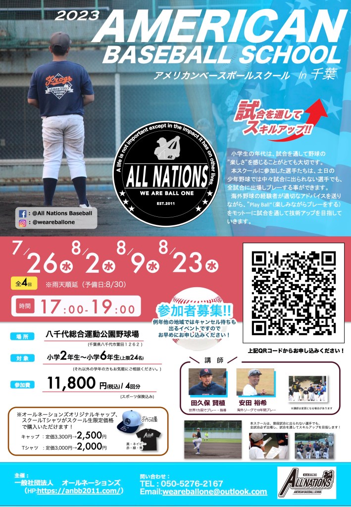 今年も千葉県八千代市で開催のアメリカンベースボールスクール千葉が夏休み期間中の全4回を終了致しました!ご参加いただいた皆様、どうもありがとうございました!