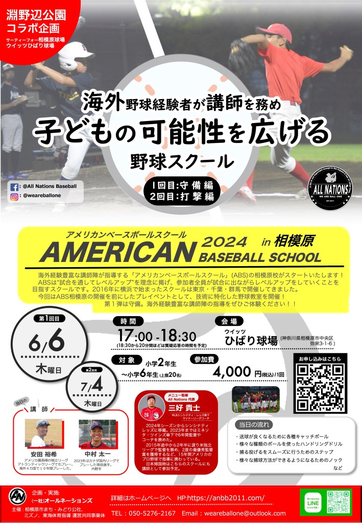 横浜・東京・千葉・群馬で開催してきましたアメリカンベースボールスクール(以下ABS)が相模原でも開催することになりました!(本スクールは秋頃開催予定)