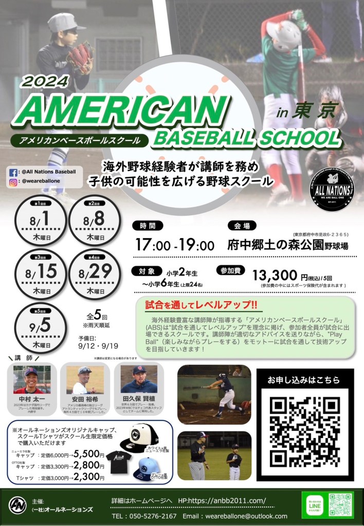 2024年も8月1日より東京都府中市でアメリカンベースボールスクールを開催致します!