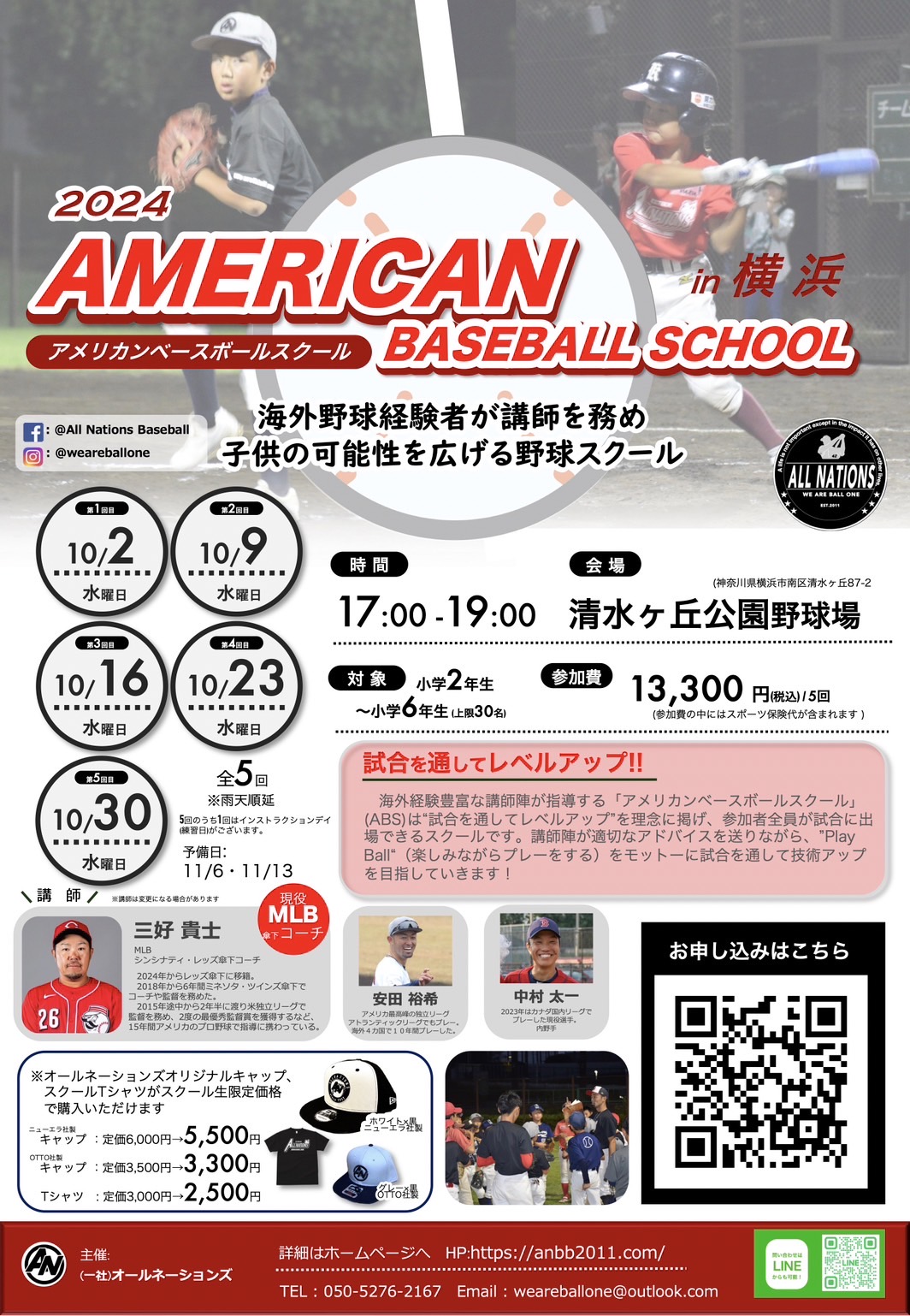 今年も千葉、東京と開催してきましたアメリカンベースボールスクールが10月には横浜、相模原でも同時開催です!