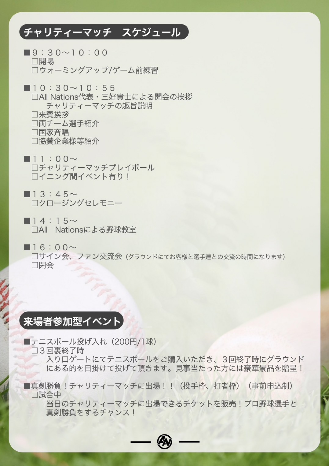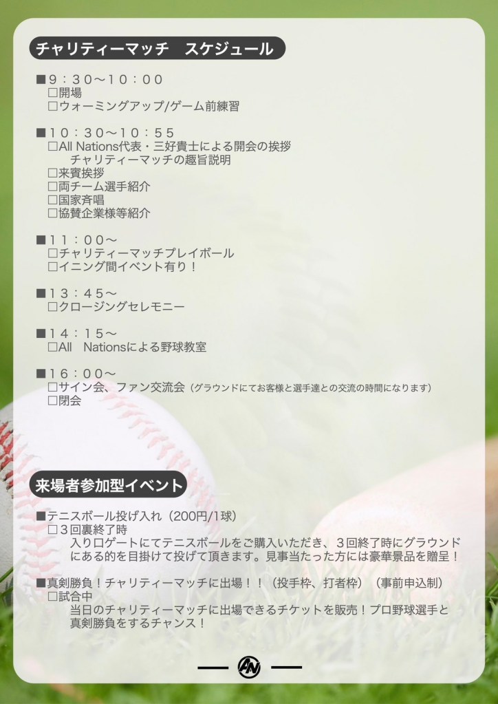 【ALL NATIONS BASEBALL】