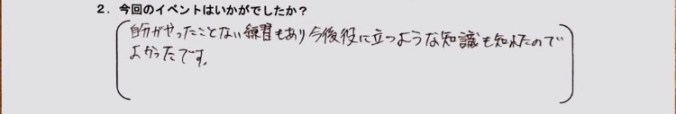 “自分がやったことのない練習もあり、今後に役立つような知識を知れて良かったです”