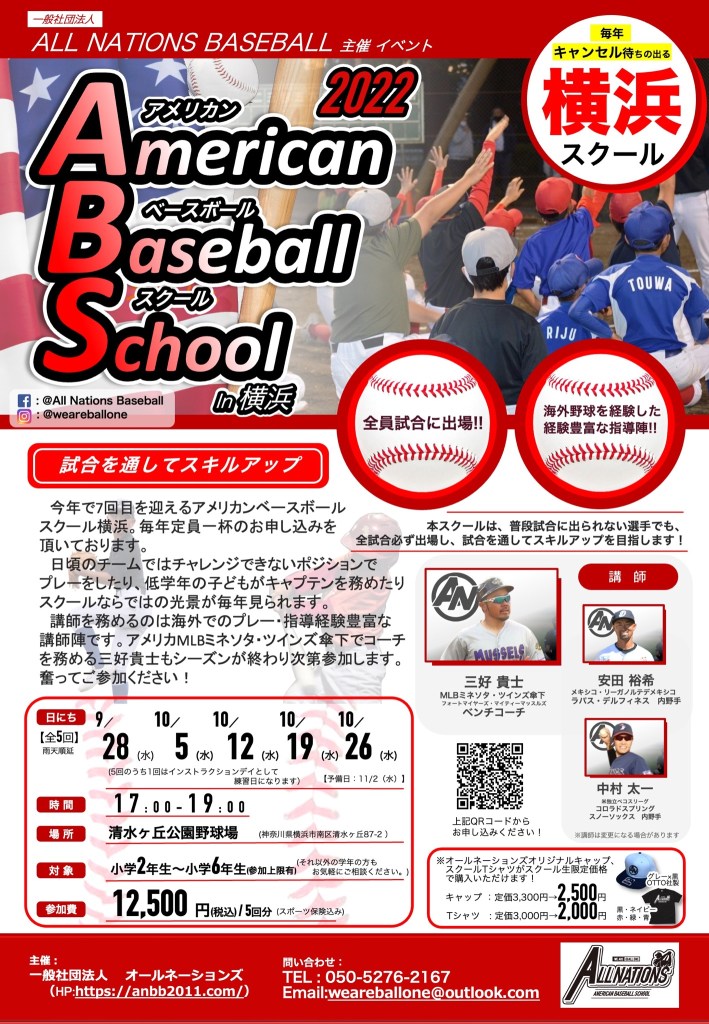今年も神奈川県横浜市でアメリカンベースボールスクールを開催致します!