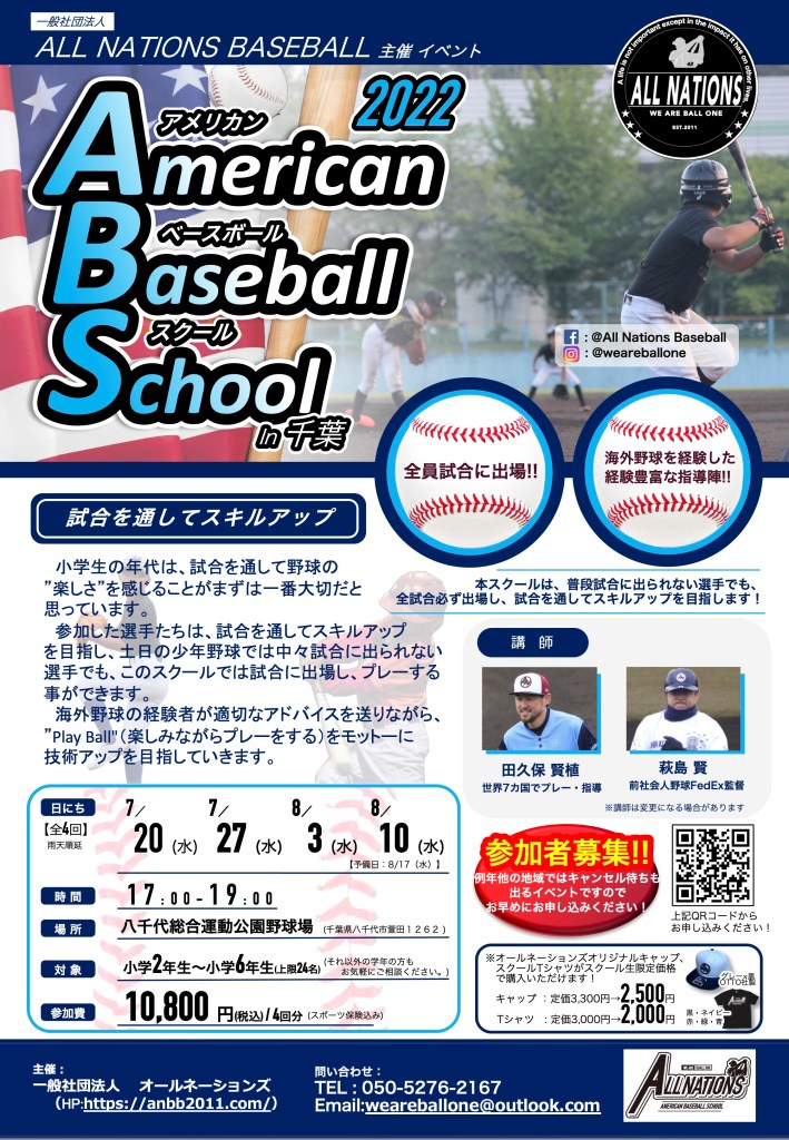千葉県八千代市で全4回開催のアメリカンベースボールが雨天延期等もなく、無事に終えることができました!!